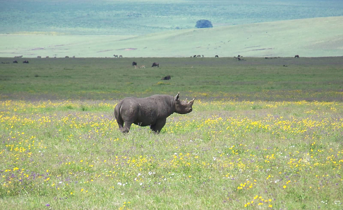 The views at the rim of Ngorongoro Crater are sensational. On the crater floor, grassland blends into swamps, lakes, rivers, woodland and mountains – all a heaven for wildlife, including the densest predator population in Africa. The crater is home to up to 25,000 large mammals, mainly grazers – gazelle, buffalo, eland, hartebeest and warthog. You will not find giraffe as there is not much to eat at tree level, or topi, because the competition with wildebeest is too fierce, nor will you find impala. The crater elephants are strangely, mainly bulls. There are a small number of black rhinos here too. The birdlife is largely seasonal and is also affected by the ratio of soda to fresh water in Lake Magadi on the crater floor.