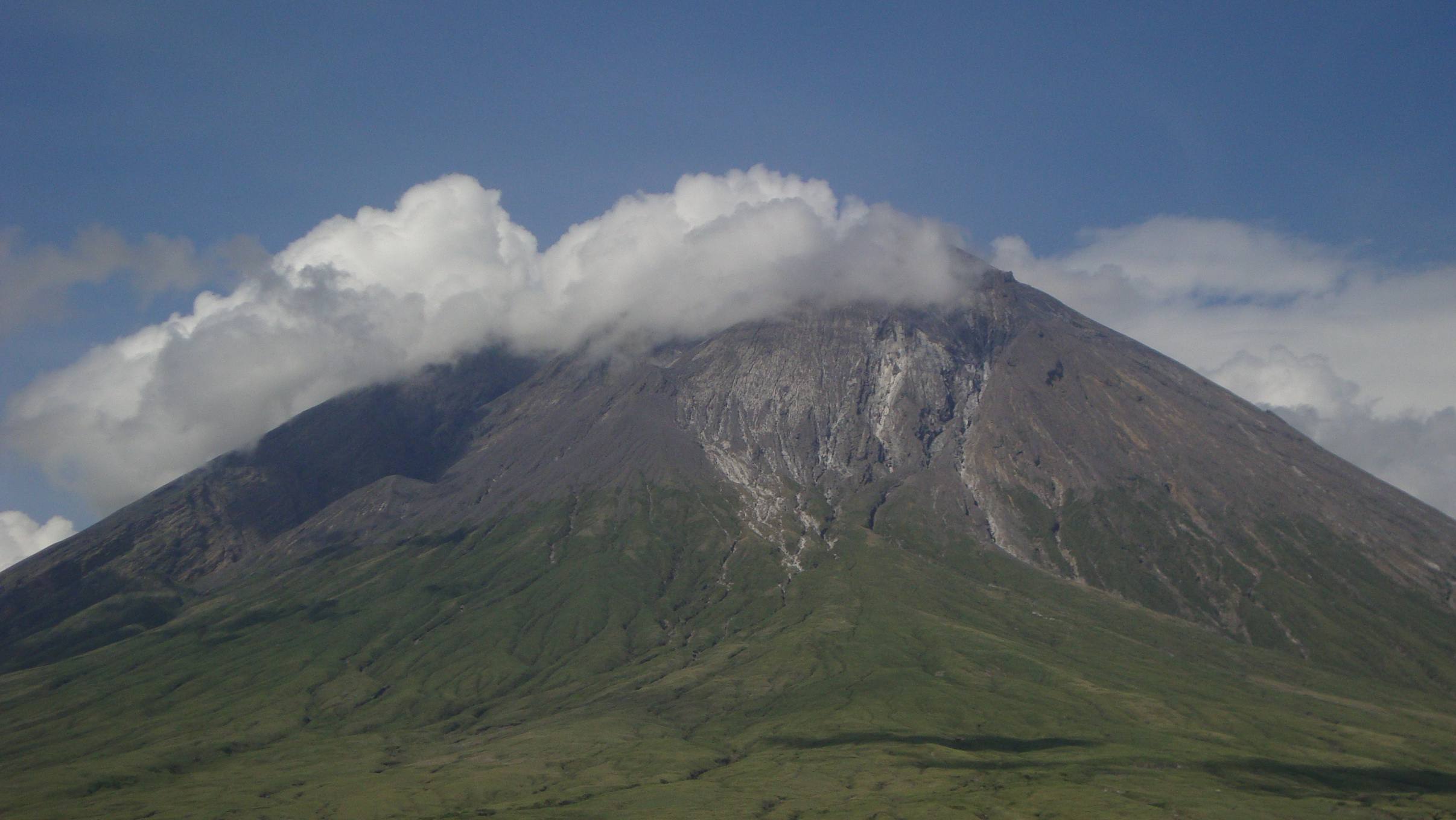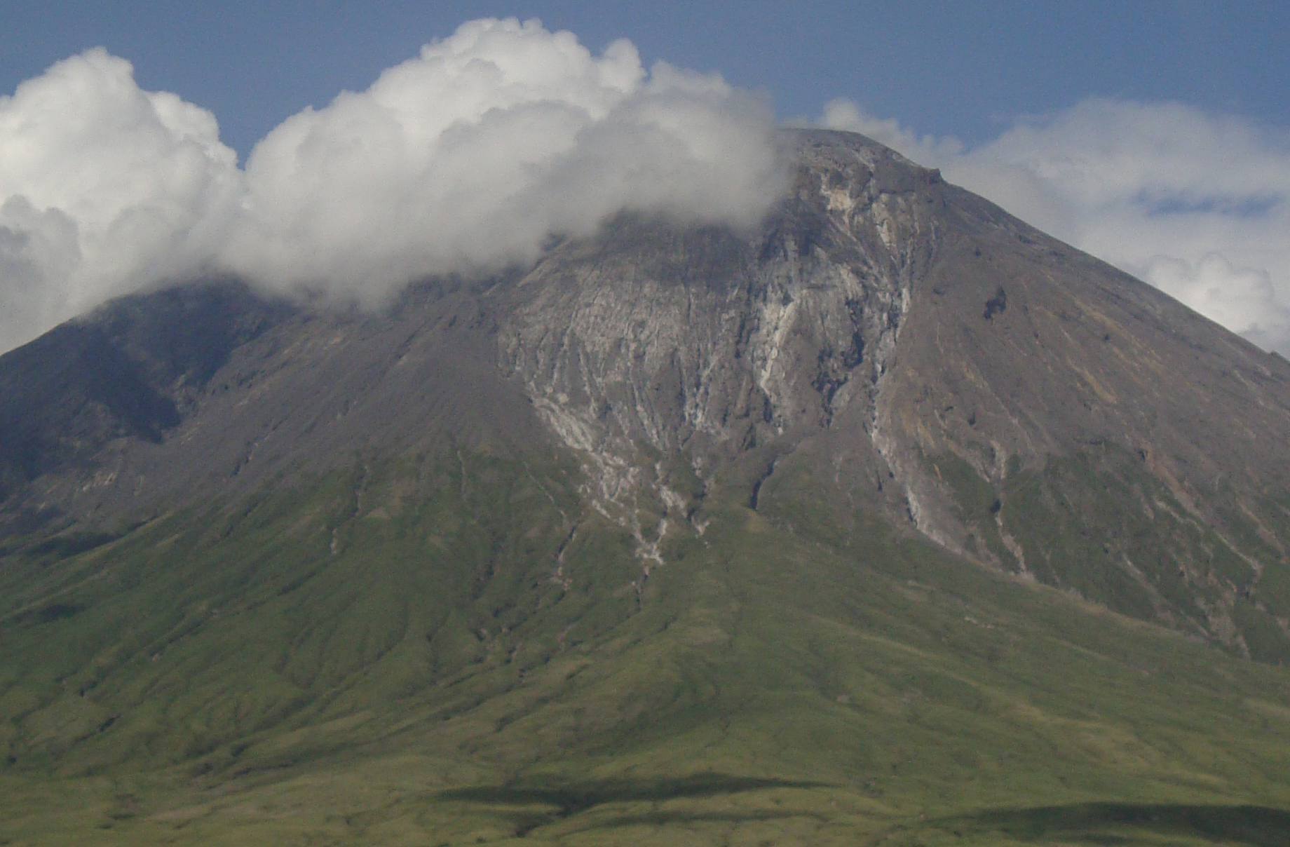 Ol Doinyo Lengai is a unique and extremely fascinating volcano that is located about 120 km NW of Arusha, Tanzania. It is the only volcano in the world that erupts natrocarbonatite lava, highly fluid lava that contains almost no silicon. Natrocarbonatite lava is also much cooler than other types of lava; being only about 950 degrees F (510 degrees C) compared to temperatures over 2000 degrees F (~1100 degrees C) for basaltic lava. Natrocarbonatite is the most fluid lava in the world, with low gas content can flow like a whitewater stream, and actually has a viscosity near that of water.