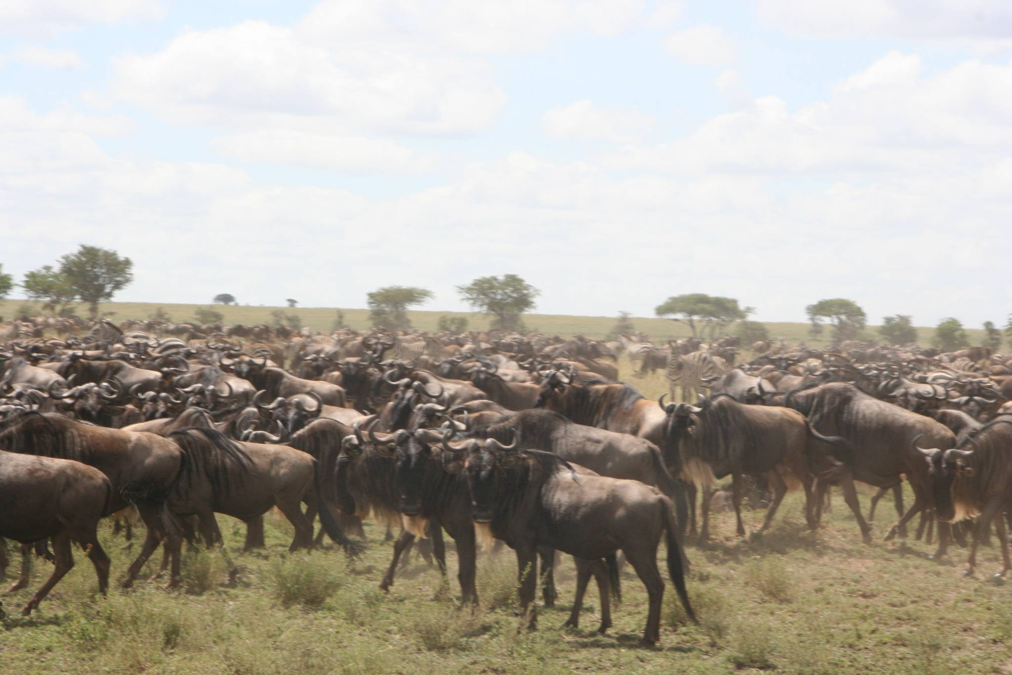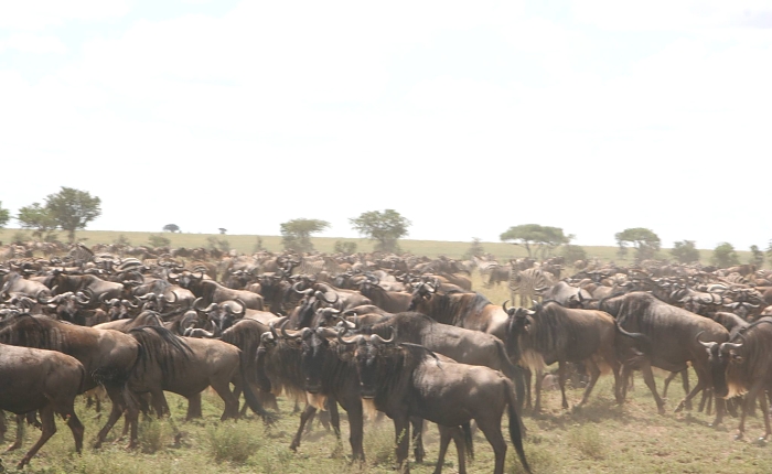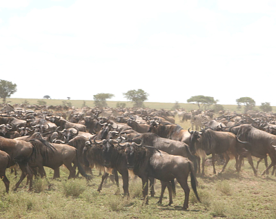 The annual migration of more than 1.5 million wildebeests as well as hundreds of thousands of zebras and gazelles is triggered by the rains. The wet season starts in November and lasts until about May. Generally the herds congregate and move out at the end of May. Their movement is a continual search for grass and water – the moving mass of animals requiring over 4,000 tons of grass each day.